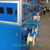 The equipment adopts industrial computer and programmable logic control (that is IPC+PLC mode) to realize the line’s synchronal running and the independent operation. Industrial embedded 17’ monitor is adopted. Extruder and caterpillar are controlled by individual control cabinet. Temperatures, line speed, rotation speed of screw pole, current of extruder, length are displayed on the control cabinet of extruder. One group of special control cabinets (four cabinets) are adopted for the synchronization of whole line. There are three emergency buttons for the line. (Extruder, main control cabinet, tape corrugator.)